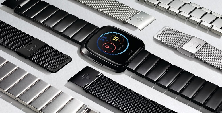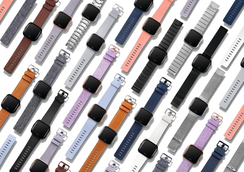 The Fitbit Versa will be offered in a number of finishes, and with a selection of interchangeable bands. The body itself will be offered in stainless steel, charcoal black, and rose gold. Bands, meanwhile, will include stainless steel links and mesh, Horween Leather in cognac brown, midnight blue, lavender, and saddle, and swim-ready fabric in peach, gray, black, periwinkle, and white.