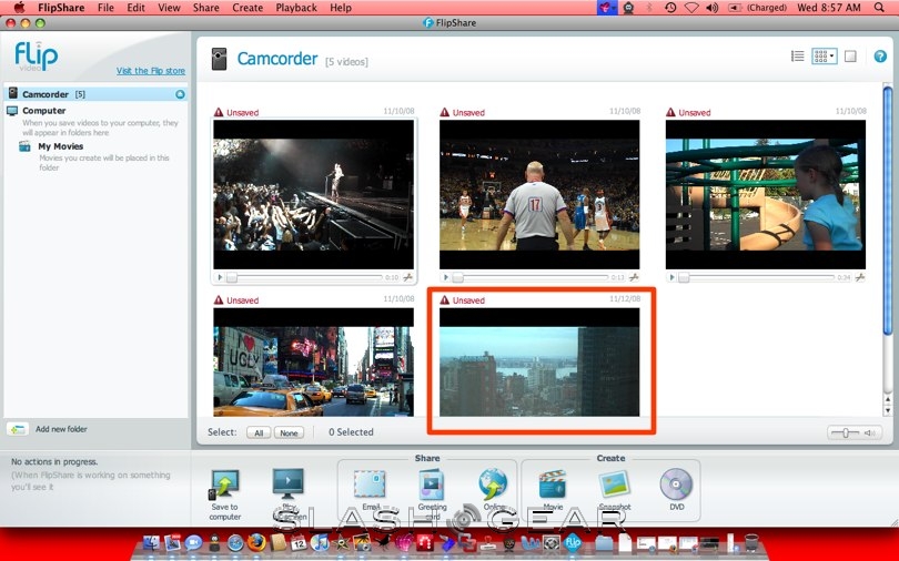 Software has always been a strong point of Flip cameras, and the MinoHD is no exception. Preloaded on the camcorder itself is FlipShare, a Windows and Mac compatible editing and uploading suite, and it was incredibly useful to be able to switch between the PC and Mac laptops I have with me. Editing it done in a straightforward drag and drop fashion, and then the app will help you burn them to a disc or, after being compressed, upload them to a video sharing site such as YouTube.