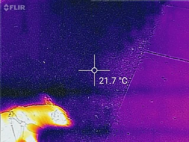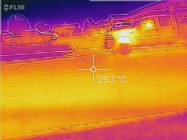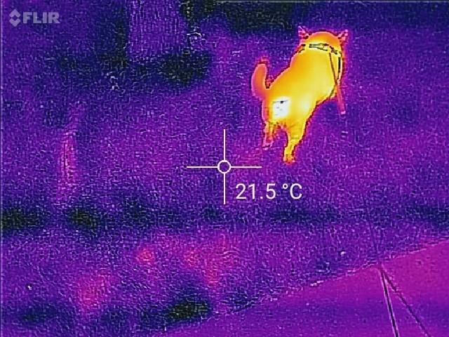 You can adjust the amount of visual spectrum you see as well as the amount of thermal image you see using apps like FLIR Tools. Below you'll see thermal information only.