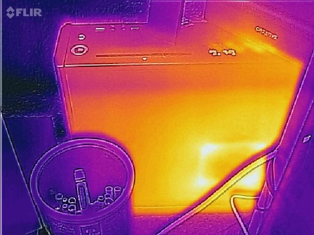 Another place you might use FLIR ONE is in investigations of your entertainment system, seeing potential flare-up points. That's one hot laptop.