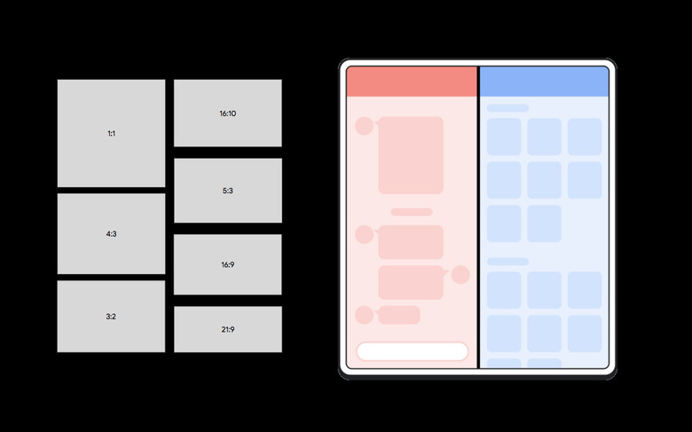 As Google's latest Android 12 (Android S) developer document suggests, there are "super high long and thin screens (such as 21:9 for a folded device) all the way down to 1:1" for "Foldables" as they call them. Their developer document shows the following grid of potential sizes developers should look to for future Android devices. If we're talking "Passport" shaped device, we'd not be shocked by a 4:3 Pixel smart device in the future.