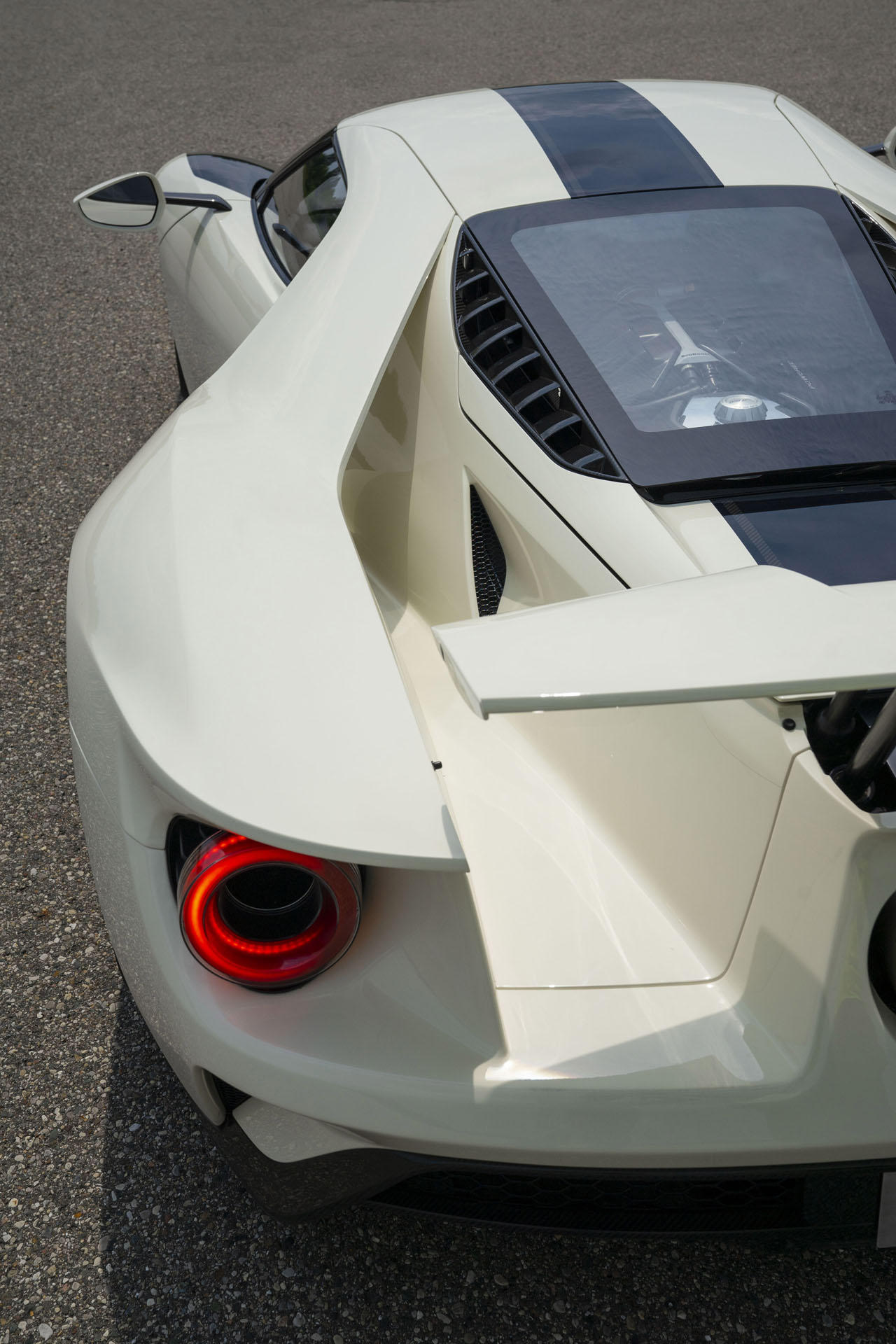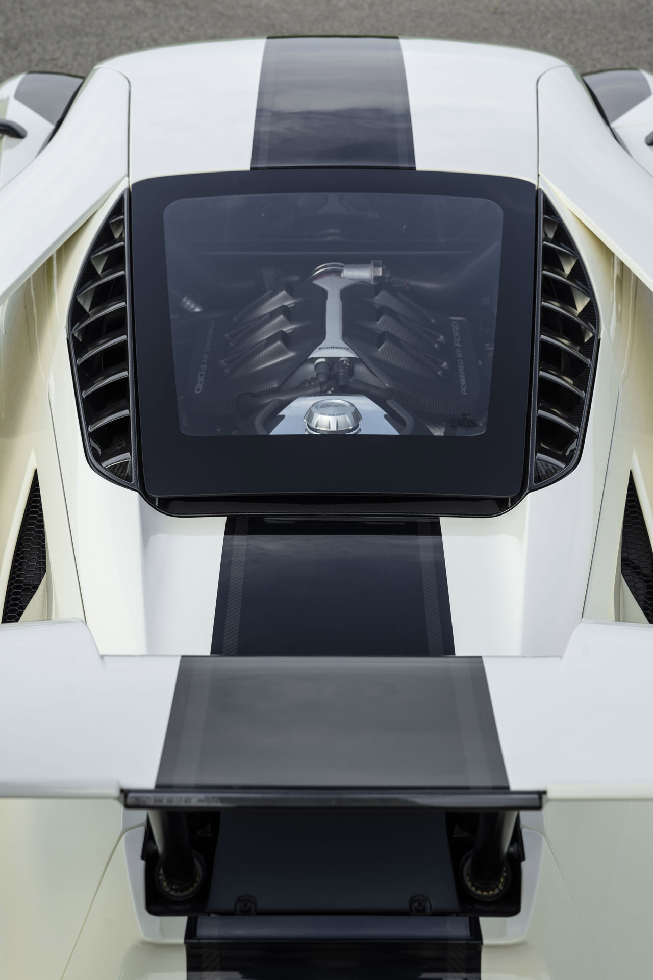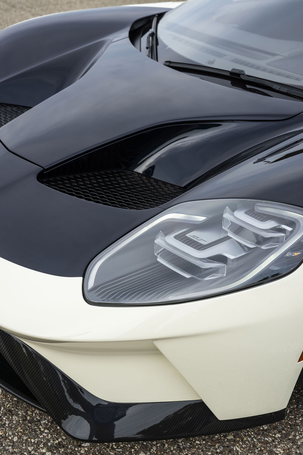 The car will be on display at Monterey Car Week alongside the only surviving 1964 Ford GT prototype. That surviving Ford GT prototype is chassis GT/105 and is clad in its original livery. The Heritage Edition car also features exposed carbon fiber front splitter, side sills, mirror stalks, engine louvers, and rear diffuser. All the components are finished in glossy carbon fiber.