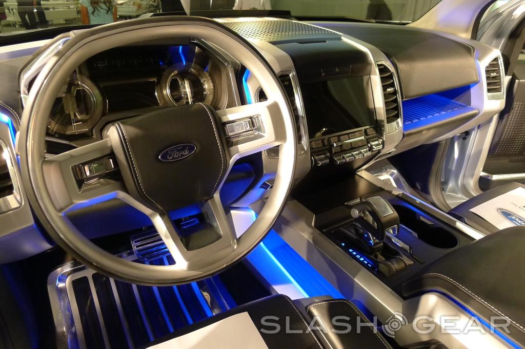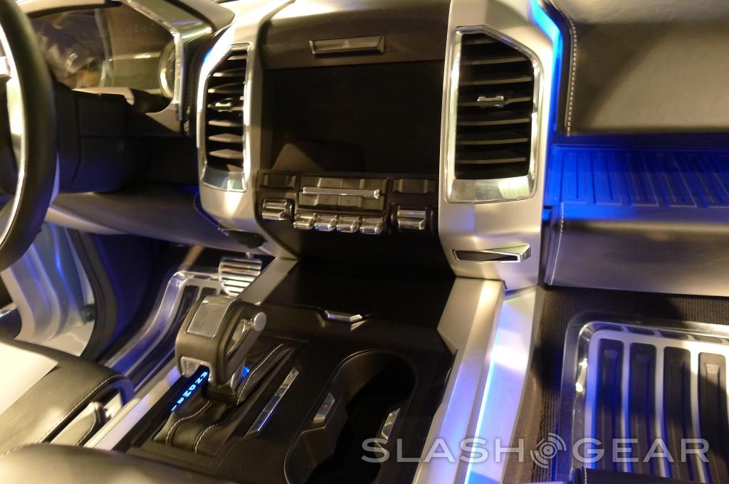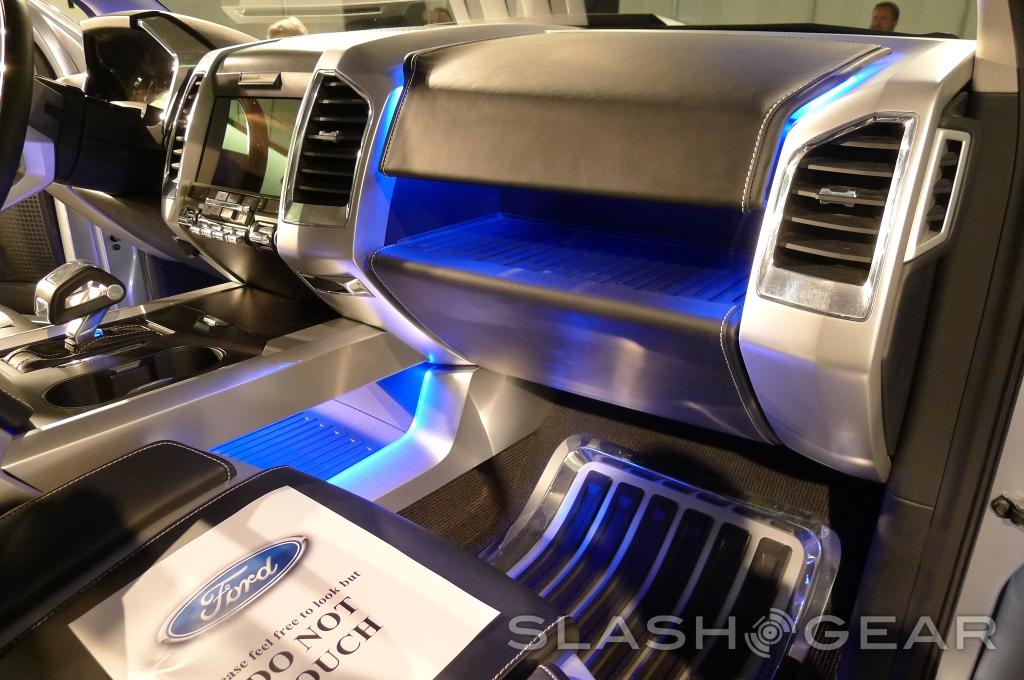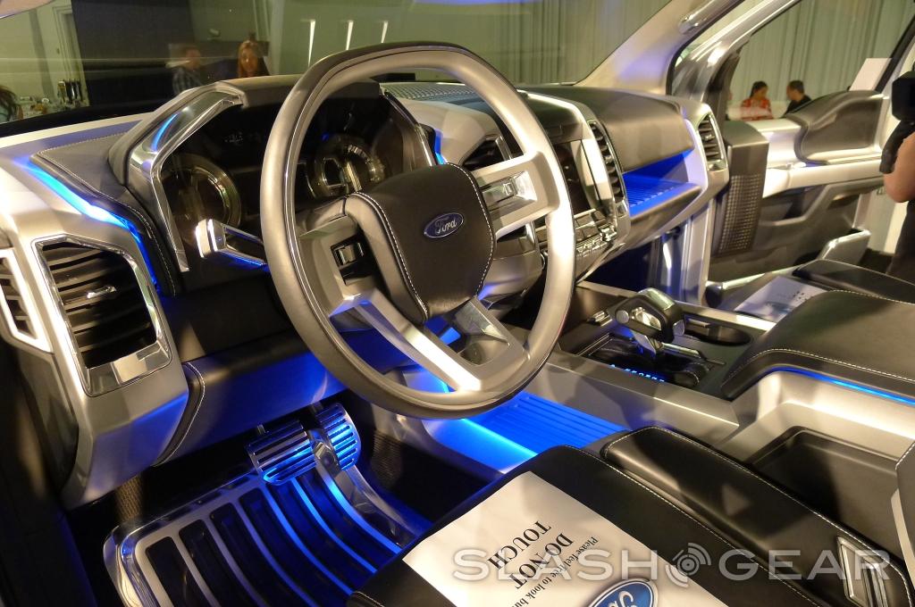 But here we are, June of 2013 and this machine is still appearing ready to roll at Ford special events. Active wheel shutters for improved aerodynamics, active grille shutters for engine cooling, and next-generation EcoBoost with auto start and stop optimized for trucks are all here and fully operational. This vehicle works with a six-speed SelectShift automatic transmission as well.