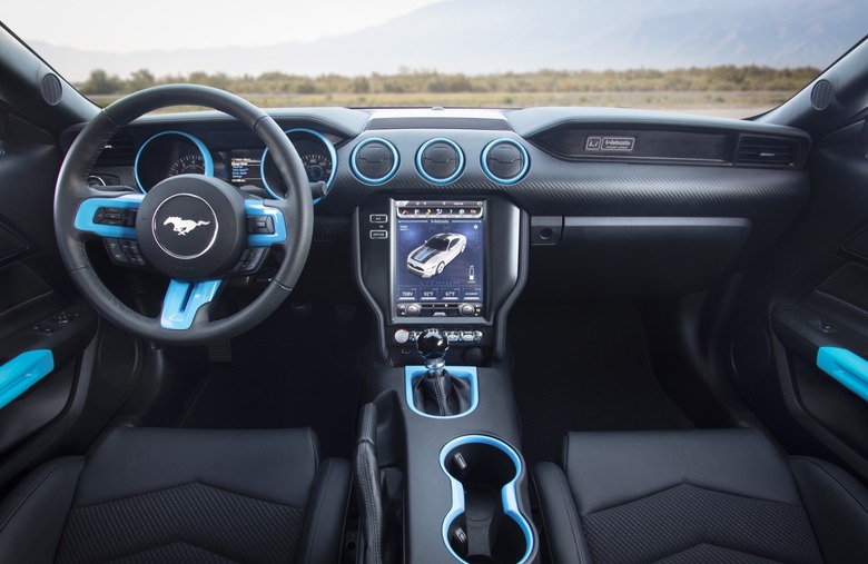 Ford Performance half shafts along with a Super 8.8 Torsen differential are onboard, and the coupe is fitted with 20-inch Forgeline lightweight wheels shod in Michelin Pilot Sport 4S rubber. The Shelby GT350 donates its six-piston front brakes, while the Ford Performance Track Handling Pack is also included, along with the automaker's strut tower brace.