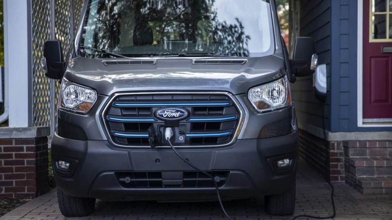 Meanwhile, some of the most popular features we're seeing on the hybrid F-150 will be transitioning over to the E-Transit, too. Most notably, the Pro Power Onboard option will allow the electric van's batteries to be used as a mobile generator, outputting up to 2.4 kilowatts for use on job sites or similar.