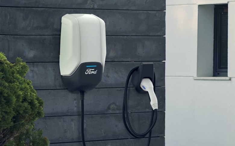 It's a Level 2 charger, running off a 240-volt outlet. Later in the year, Ford will be using Amazon Home Services to install the charger as an optional service. Alternatively, you'll be able to order it from a Ford dealer and have it delivered, or via the FordParts site. If you're buying a Mustang Mach-E, you can also buy the Connected Charge Station at the same time, and finance it rather than pay the $799 outright.