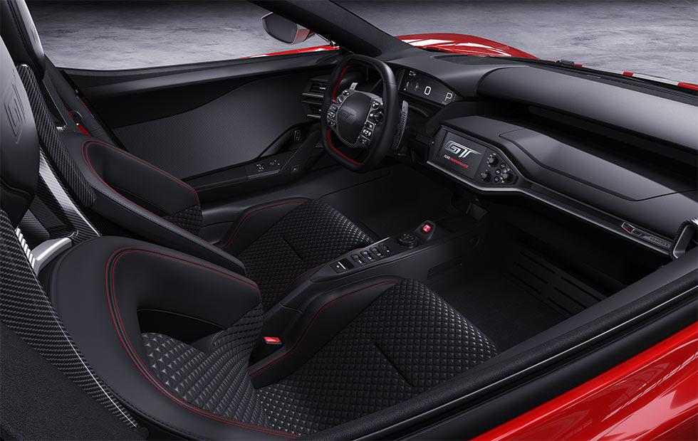 Inside, Ford trims the carbon fiber seats in leather with red accent stitches with the same color scheme carrying over to the "D" shaped steering wheel. Seat belt webbing is red and the paddle shifters behind the steering wheel are anodized gray. Other interior bits, like the instrument panel, door register bezels, and the x-brace are satin dark stainless in color. Each of these special cars will have a unique serialized plate, exposed carbon fiber door sills, air register pods, and center console. Ford doesn't say exactly how many of these limited edition cars will be made for the 2018 model year.