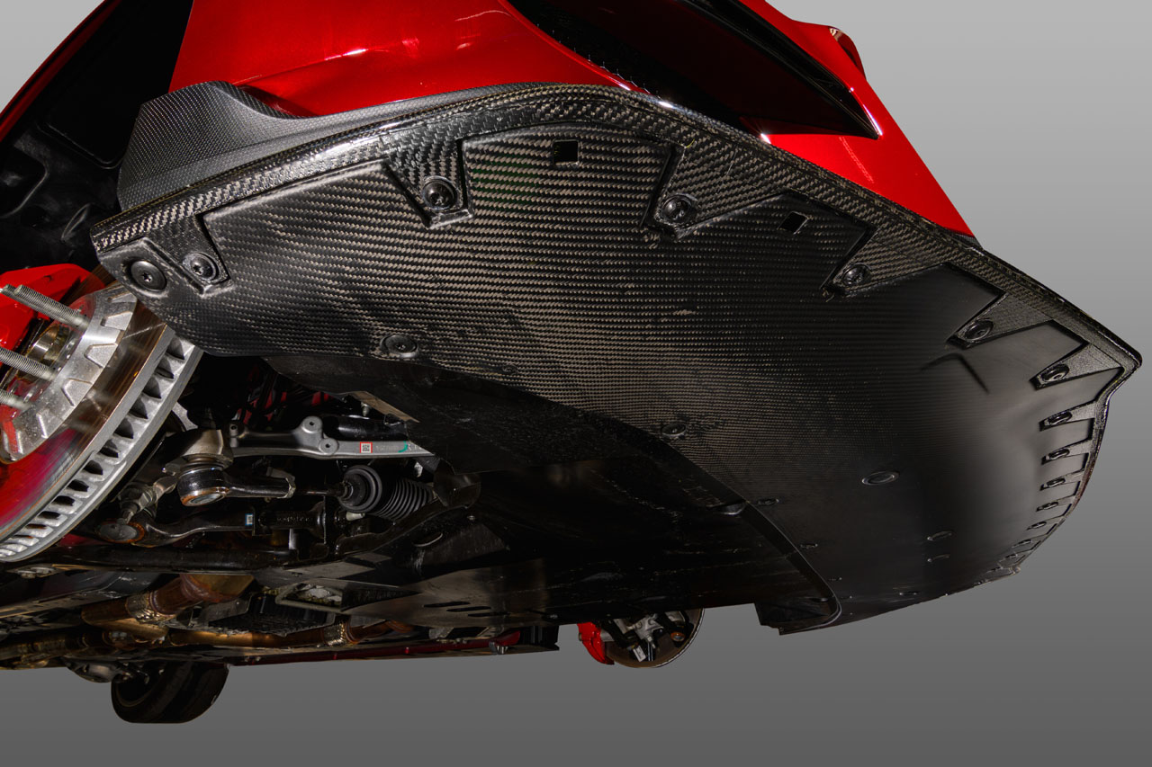 Each of the carbon fiber components is designed for high strength and rigidity with low weight. All of the accessories are also designed specifically to survive the high-energy resulting from competition at the racetrack or dragstrip. Some of the components also shave weight from the car. One example is the carbon fiber hood vent and rain tray kit that weighs only four pounds, half the weight of the stock part.