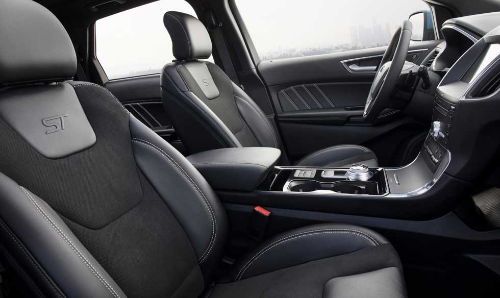 The Edge ST will roll on special 21-inch wheels and it will have special interior design cues including sportier seats and ST badging. Edge ST will haul five people and comes with more driver assist features than other mid-size SUVs. The features include Forward Collision Warning and Dynamic Brake Support; Pre-Collision Assist with Pedestrian Detection; BLIS with Cross-Traffic Alert; Lane-Keeping Alert; Lane-Keeping Assist; Auto High Beams; and Hill-Start Assist.