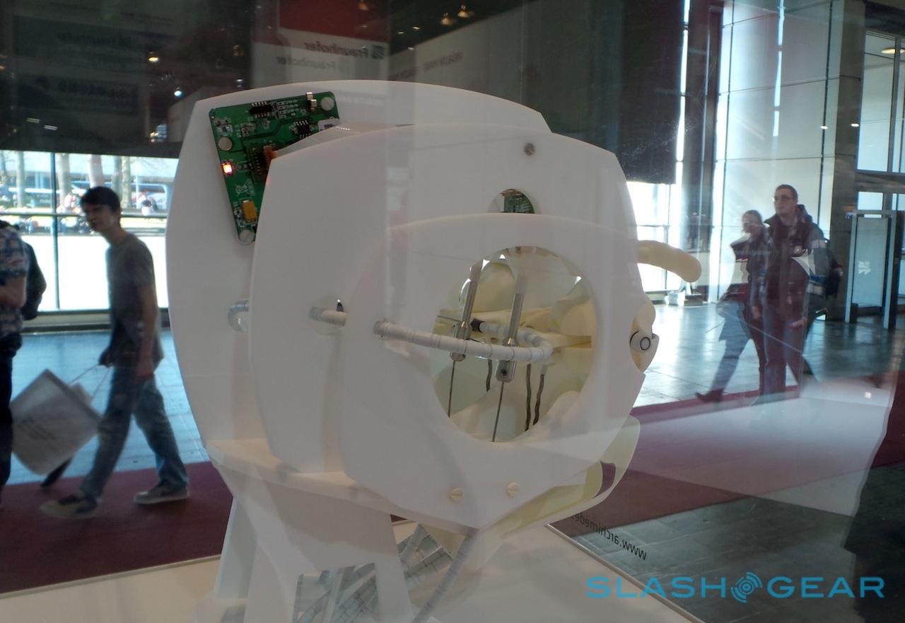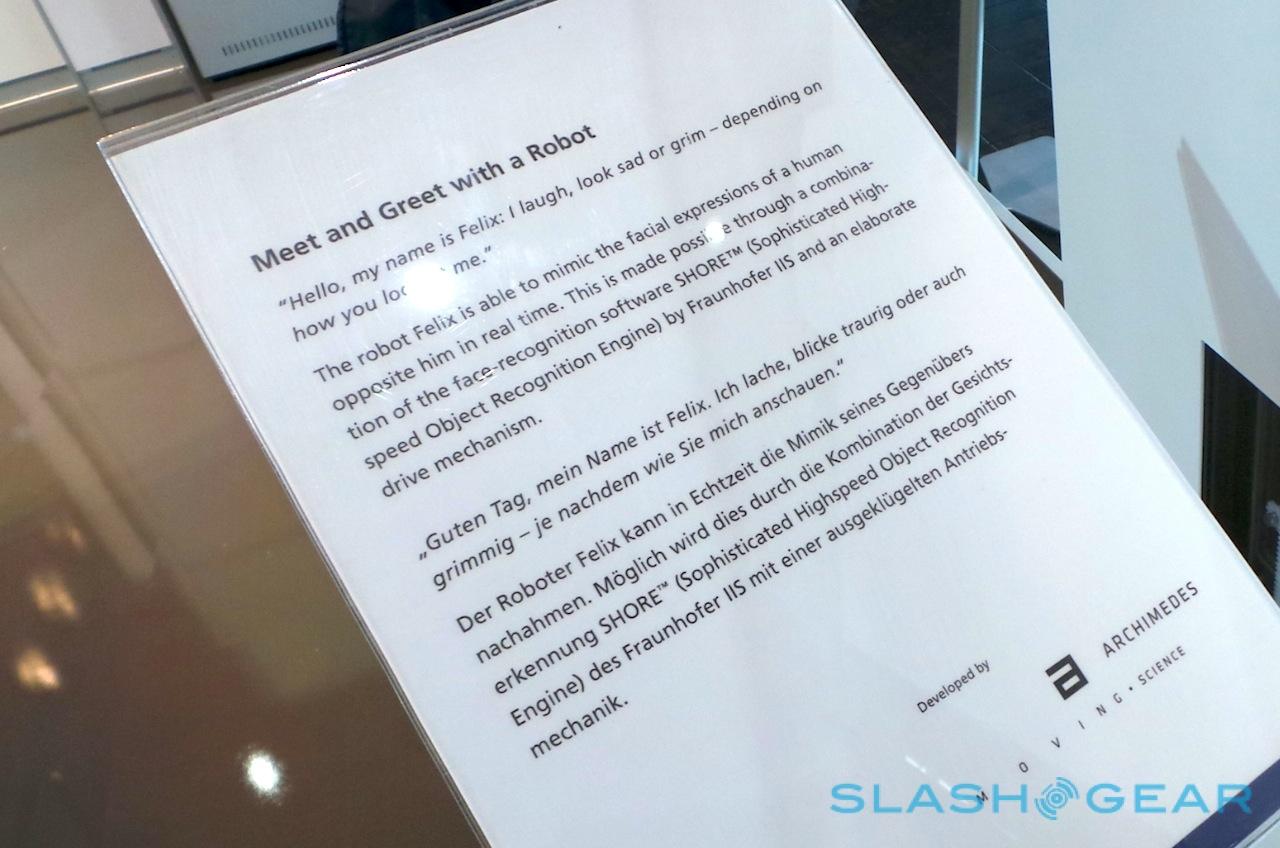In hospitals, the degree of pain to which patients are suffering could be monitored autonomously, helping the more efficient use of painkillers (and avoiding unnecessary suffering). Augmented reality games are another possibility, but Fraunhofer is also keen on the idea of using the SHORE technology to enhance "virtual actors" and "intelligent agents" for customer services and entertainment, reacting to those they are talking to, behaving appropriately for their mood, and even mimicking that mood themselves. In fact, Fraunhofer had a robotic head which, using a camera in the forehead, could replicate the viewer's expressions with animated eyes, mouth, and other elements.
