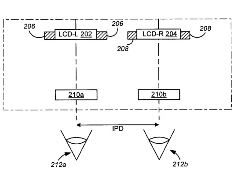 "One advantage is that the treatment of the peripheral area of the field of view leads to increased viewing comfort compared to conventional HMDs, and may also lead to a smaller likelihood of the user experiencing "motion sickness" phenomena during extended viewing. Another advantage is that users can make individual adjustments of their HMDs to fit the distance between their eyes. Further advantages include a greater immersive experience, larger virtual field of view, and increased overall image brightness" Apple patent