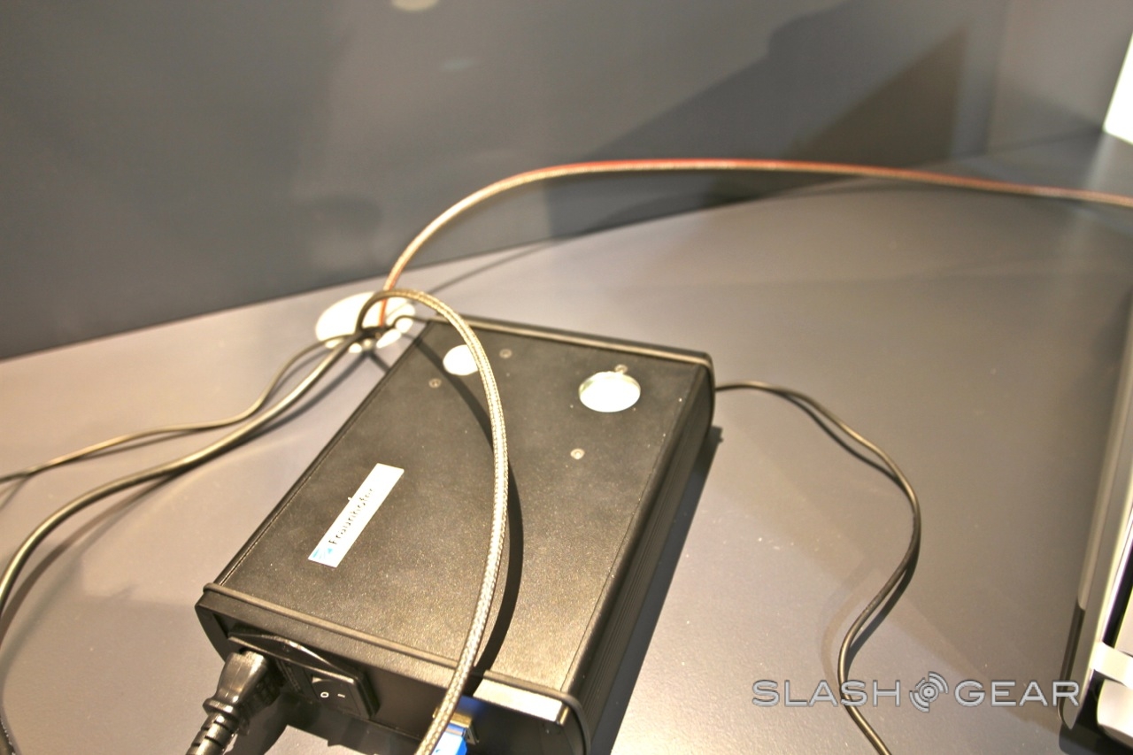 The Fraunhofer Institute's LED-based light networking technology left us mighty impressed on paper back in August, so we jumped at the chance to test the Visible Light Communication system here at IFA 2011. Promising up to 800 Mbit/s data rates from rapidly flickering white LEDs, without any risk to hospital equipment, airline hardware or sensitive manufacturing tech, Fraunhofer's demo ran at a more mundane 10 Mbit/s but was still enough to stream high-res video streams between two notebooks. Check out the full video and more details after the cut.
