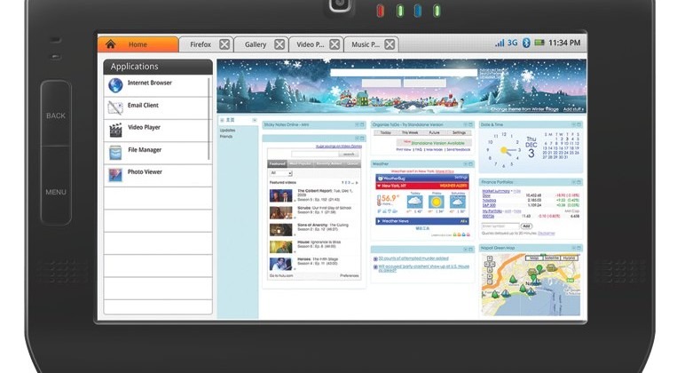 Example smartbook platform applications intended to run on the tablet include a web browser with Adobe® Flash® Player and multimedia plug-ins, a media center, PDF and image viewers, a mail client, an RSS reader, an office suite, handwriting utilities and various widgets for Twitter, Facebook, Flickr, Weather SMS and other applications.
