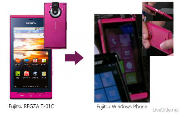 Fujitsu's first Windows Phone handset could well be a reworked Android device, with particular similarities spotted between the smartphone briefly previewed earlier this week and the REGZA T-01C currently available on Japanese carrier NTT DoCoMo. Both handsets have a distinctive camera ring design as well as three front-panel buttons with the same styling.