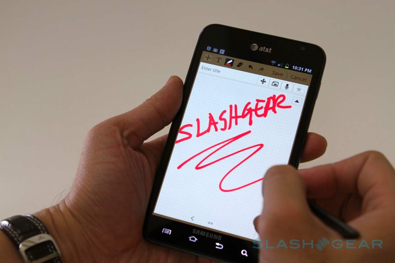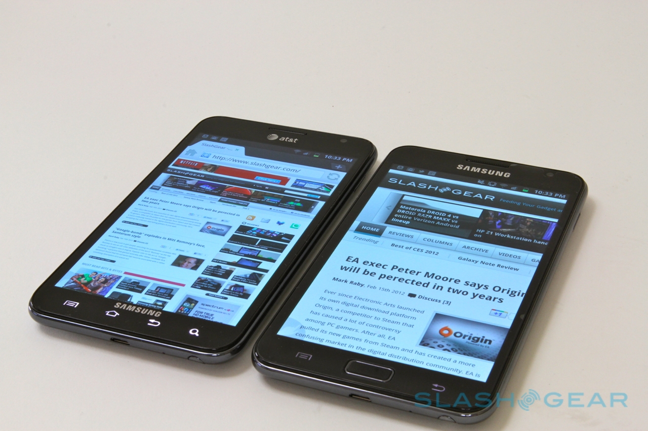 I've been carrying both the original international and the new AT&T versions of the Galaxy Note for some time now, and they're certainly relatively unique in the mobile space. Samsung believes that we're moving towards a two-handed society, though my own experience is that we're not there yet. As Samsung sees it, most BlackBerry users are two-handed typers, though I'd argue that the difference there is that RIM's phones are small enough to still type with one hand, or at least securely grip it without fear of dropping a very expensive device.