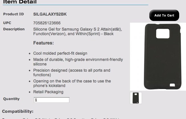 They're the compatibility names given to the retailer's silicone gel cover for the Galaxy S II, suggesting that all three versions of the handset look aesthetically similar. T-Mobile USA isn't name-checked; that could be because it isn't getting the GSII or, far more likely, because it has managed to get Samsung to make it a differently-shaped version of the handset.