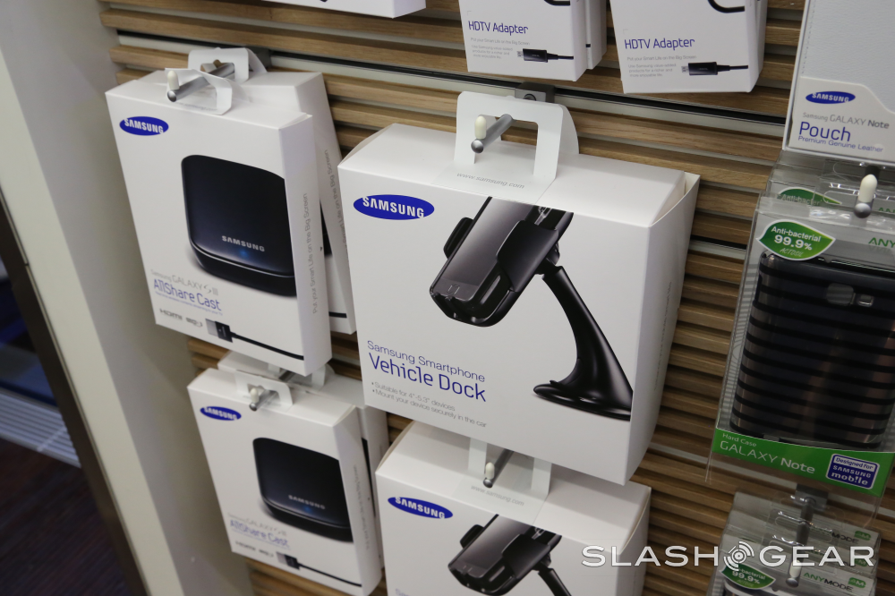 From there it's all about charging and protecting, Samsung presenting one dock that appeared at first to be the Wireless Charging Kit mentioned in the presentation earlier today, but indeed it is not quite that. Instead its a slightly more traditional dock with aspirations for showing the device off in all its vertical glory. Note the front and the back (as seen in the gallery below) and the fact that it's not quite out in the open yet.