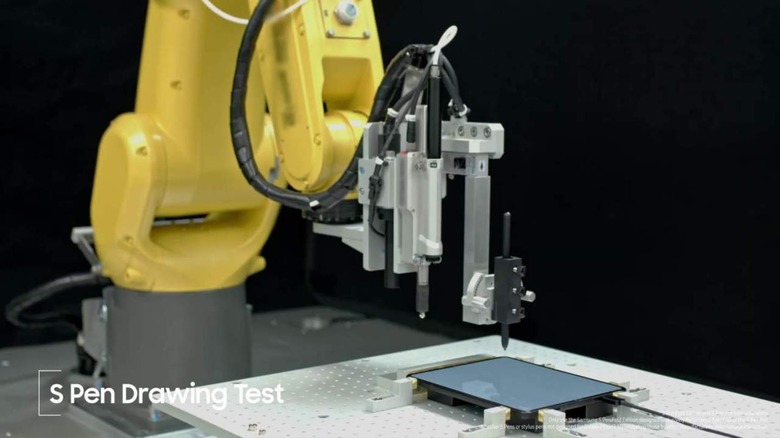 The Galaxy Z Fold 3 gets a fourth test designed specifically for its special feature. Another machine tests the performance of the Wacom digitizer underneath that foldable screen in all areas, especially in the gap in the middle. Samsung curiously is silent about testing just how much pressure the screen can take from that specially-designed stylus.