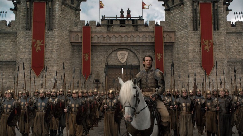 As the Targaryen forces rally the night before their planned siege, Tyrion meets with Jaime and frees him from captivity. He tells Jaime to reach Cersei and escape King's Landing to start a new life in Pentos. He also asks Jaime to ring the bells and raise the gates to avoid more bloodshed than what's necessary, and the two say a tearful goodbye.