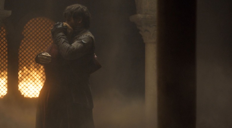 Jaime eventually find Cersei and attempts to lead her to the boat Tyrion has put on the beach beneath the keep to make their escape to Essos. In the lowest part of the keep, however, they find their exits blocked by rubble. Trapped, they embrace one last time as the Red Keep collapses on top of them.