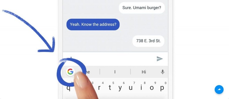 Google highlights that issue in the GIF above and video below, explaining how Gboard eliminates the hassle. Thanks to the integrated Google Search button, Gboard users can perform a Google Search without having to leave their current app. Instead, you can tap the "G" icon and type your Google Search above the keyboard. The search results will, when appropriate, nab details that can then be shared directly within the app sans copying and pasting.