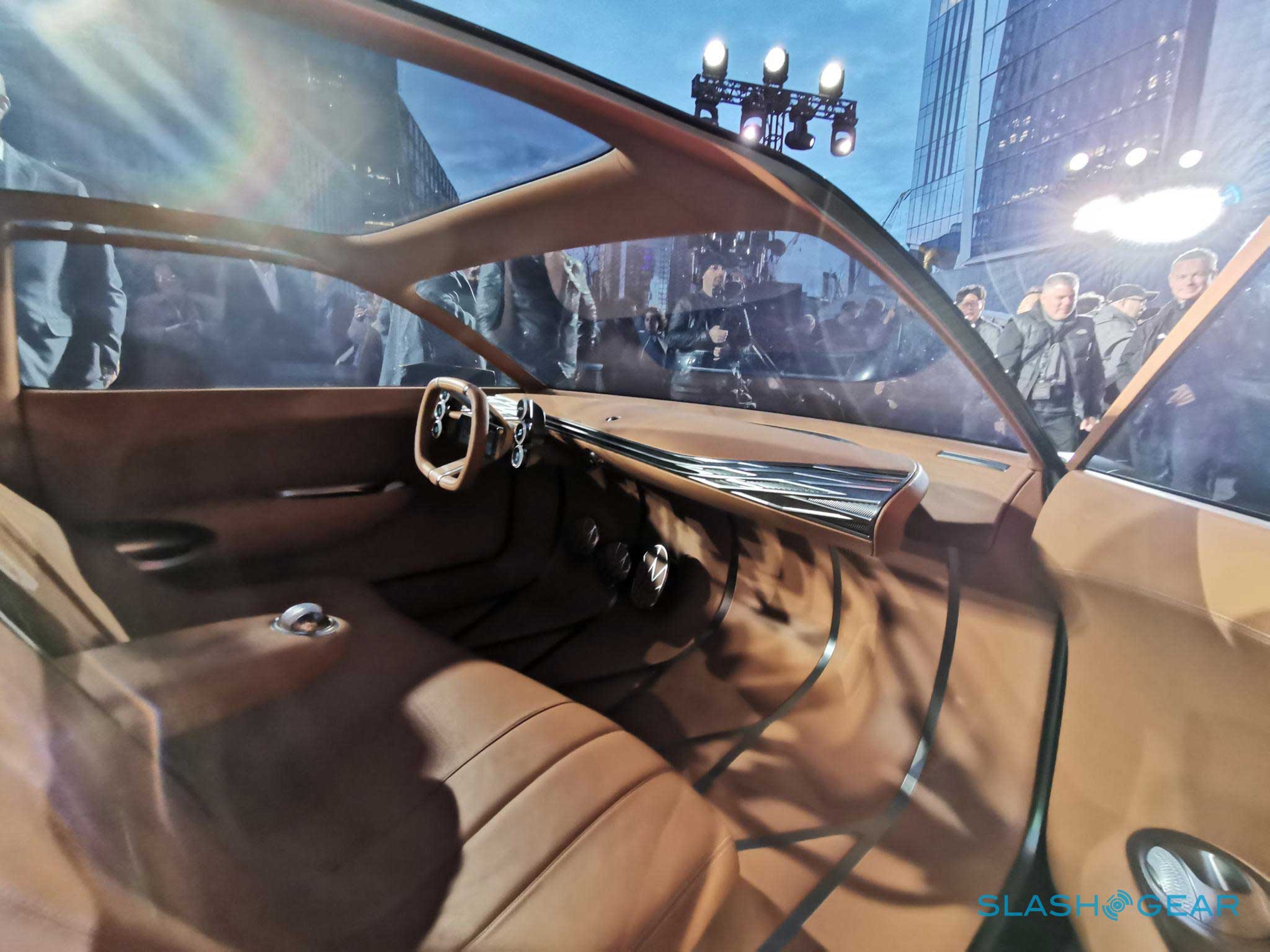 The Mint Concept has no trunk, offering instead a "generous parcel shelf" meant for occasional use. Access to the parcel shelf is via scissor-style side openings with a low load-in point for easy storage and retrieval of items. Genesis says that the Mint Concept has high-density, battery-electric powertrain that is good for an estimated 200 miles per charge and the concept can recharge using 350-KW fast chargers.