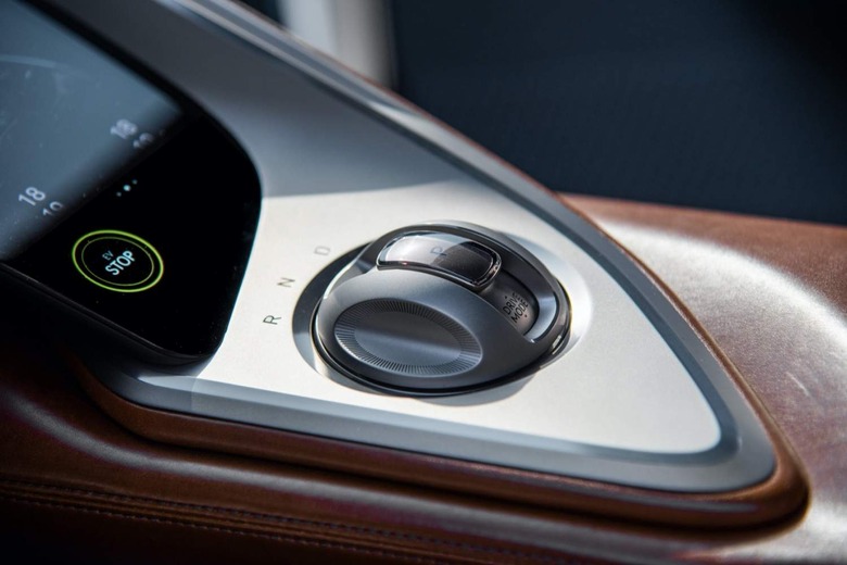 A Crystal Sphere Electronic Shift Lever also handles drive modes, while up cycled weave-patterned leather for the seat belts, wheel, and airbag cover are made from leftover pieces of hide.