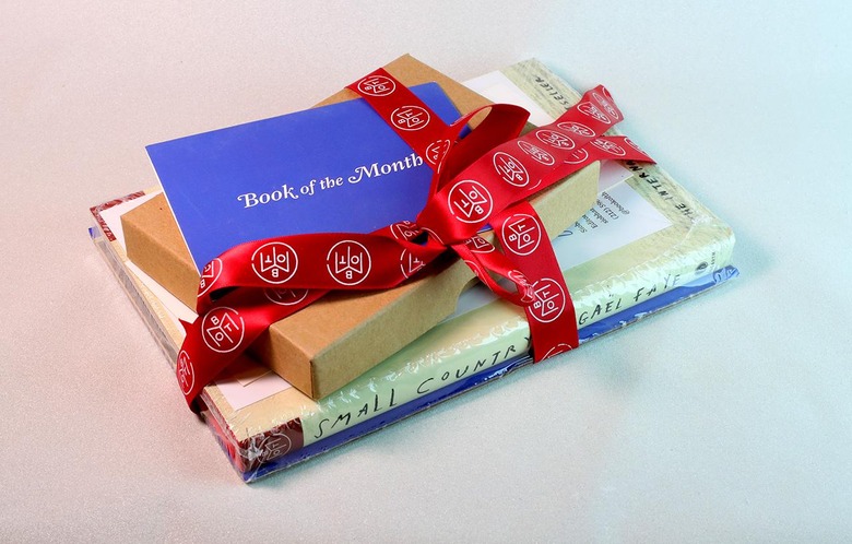 There is indeed a monthly book club called Book of the Month Club, and it's pretty well organized. The member of the club gets a book of their choice from a list of titles (pre-selected by the book wizards at BOTM). Most months feature at least one book that wouldn't normally be published until the following month, and the member can skip a month whenever they like, pushing their paid-for months back until they're done reading whatever they were reading the month before.