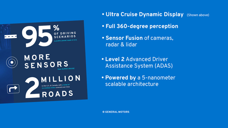 That will mean more than 3.4 million miles, GM says, encompassing a variety of road types. "Customers will be able to travel truly hands free with Ultra Cruise across nearly every road including city streets, subdivision streets and paved rural roads," the automaker adds, "in addition to highways."