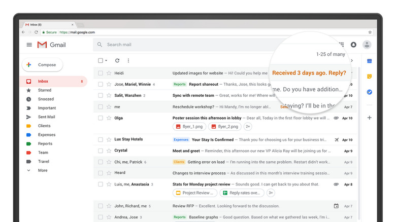 Back when word of this redesign first hit, one of the most interesting features we heard about was Gmail's new snooze function. This allows you to resurface an important message at a later time, preventing it from falling through the cracks if you receive it during a busy moment. Snooze is indeed included with this redesign, as is a new nudging feature that will prompt you to reply to emails that may have otherwise been forgotten. You can even view attachments directly from your inbox, which will definitely be a big timer saver if you receive a lot of emails and usually need to find attachments quickly.