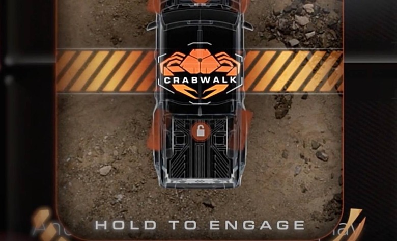 It's unclear just what the maximum angle that the Crab Mode will support is, and the maximum speed. It seems unlikely that GMC would allow the truck to operate at more than a crab's pace. However all-wheel steering does pay dividends when at a higher pace, as we've seen on other cars, where it can help improve stability at highway-speed lane changes, among other things.