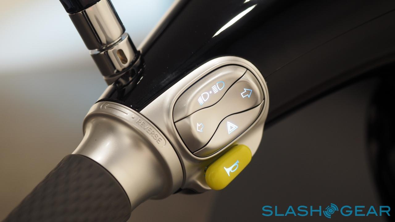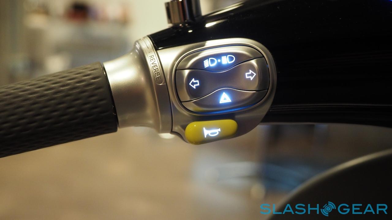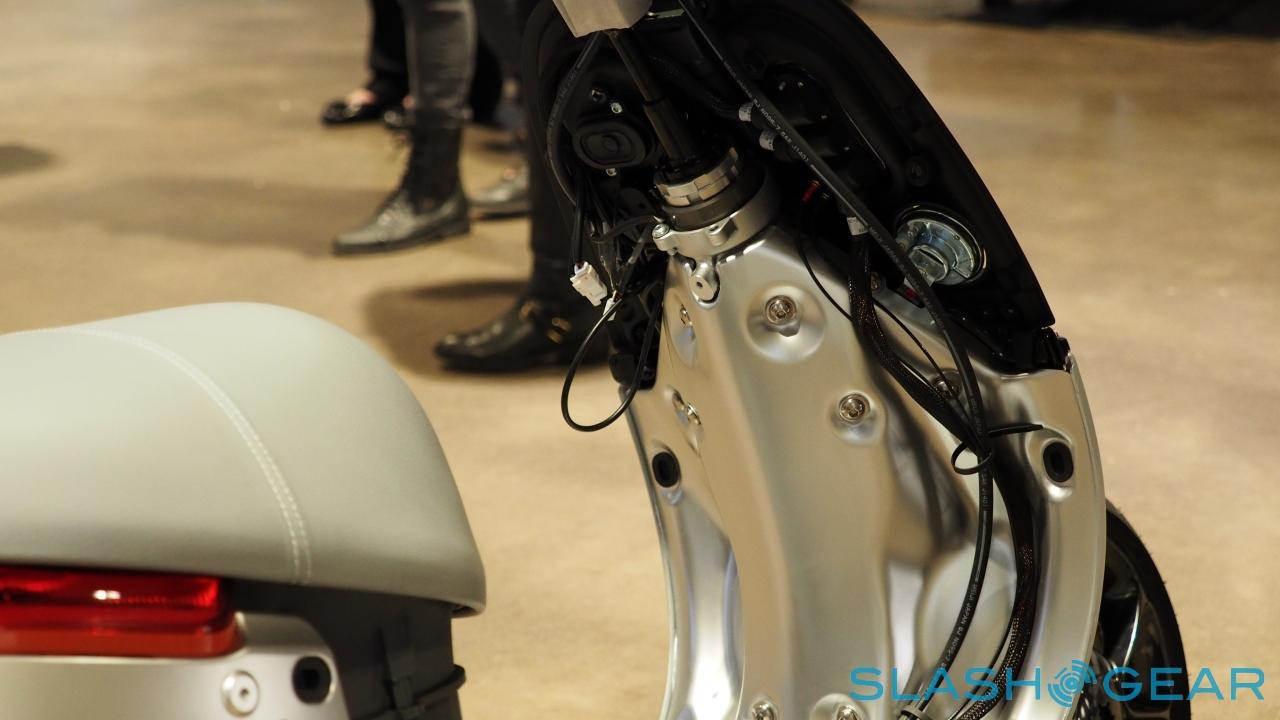 The chassis uses an aluminum monocoque, and is paired with an aluminum inverted single shock single arm at the front and an aluminum multi-link suspension system at the back. Disc brakes are fitted front and back, and there's an illuminated 0.85 cubic foot trunk with room for a full-sized helmet as well as a USB port for charging up a phone. It can be opened either with a button on the bike, or via the app.
