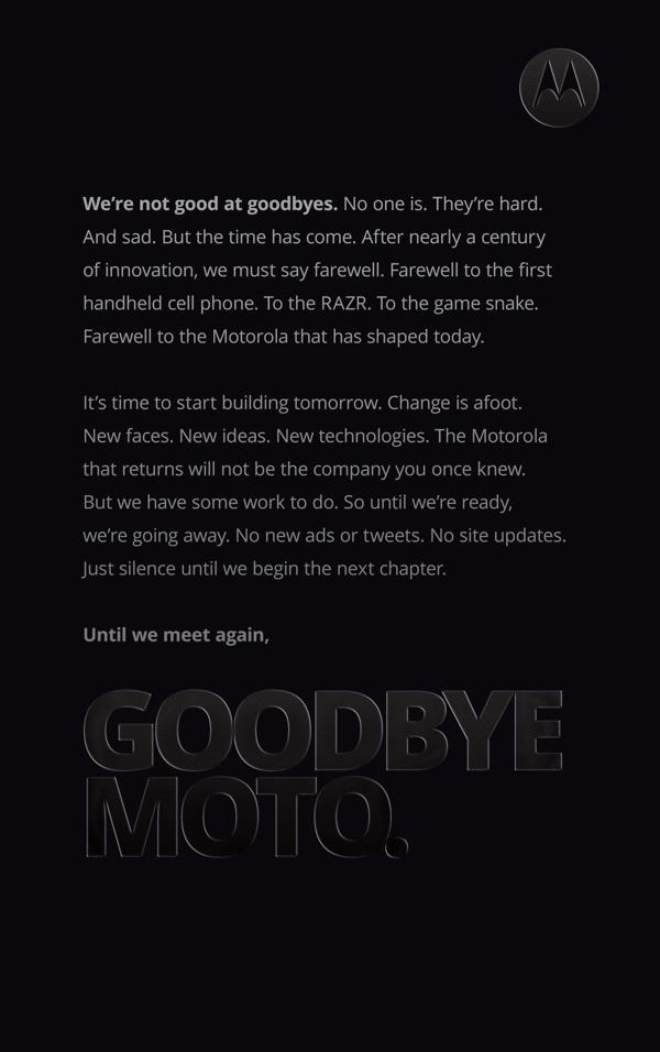 But check the idea – begin with Motorola saying goodbye. Have them make it clear that they're willing to detach themselves from the past in favor of a bright new future, aiming for devices they've never before attacked.