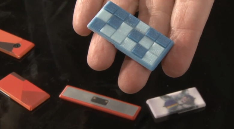 Eremenko shows off a couple of custom-printed enclosures created by 3D Systems, a group that Google is partnered with for Ara to print 3D enclosures galore. This is the same company that's 3D printing food, mind you.