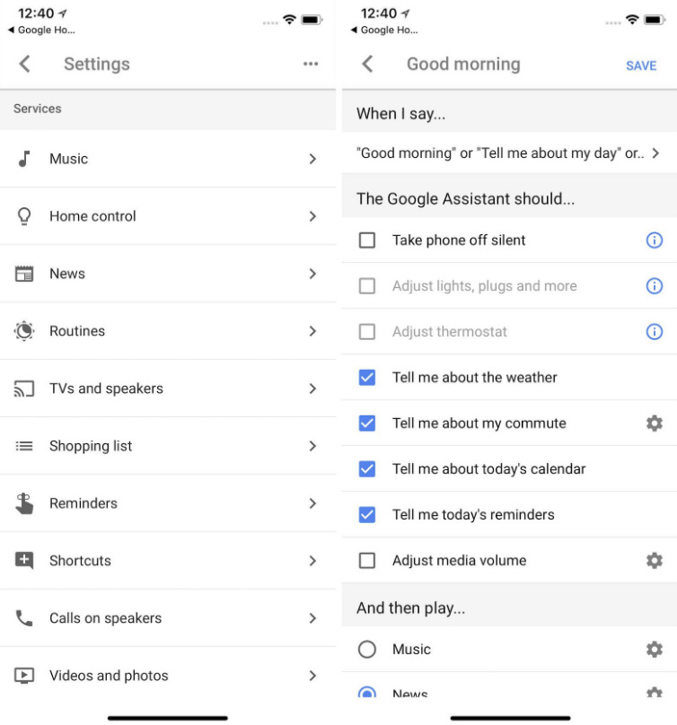 In addition, Routines can be used to begin playing some type of audio content, such as the morning news or an evening radio program. Based on users who have received Routines, it looks like "Good morning" is the only option available at the moment.