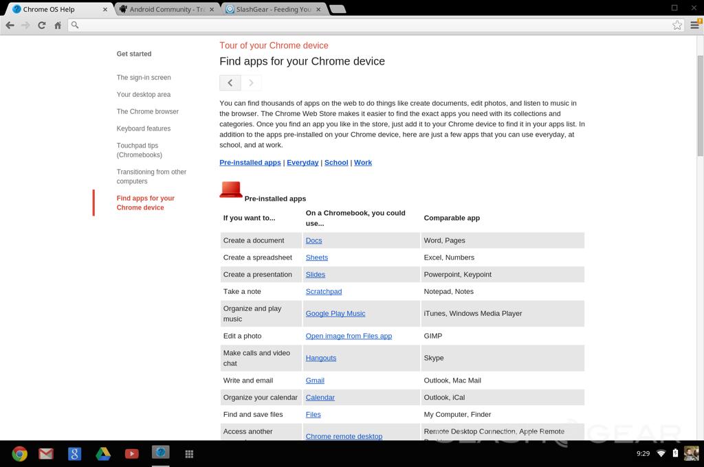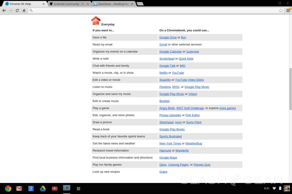 Above is a small gallery of a few screenshots from the OS. Google's conveniently added a huge Chrome OS support page that's even better than before. Details on how to get the most usage and productivity from their web-focused OS, as well as what will help you with tasks whether they are work, play, and everything else. So one more time we don't want to review the OS as a whole here, but it's seriously underpowered for this piece of luxury.