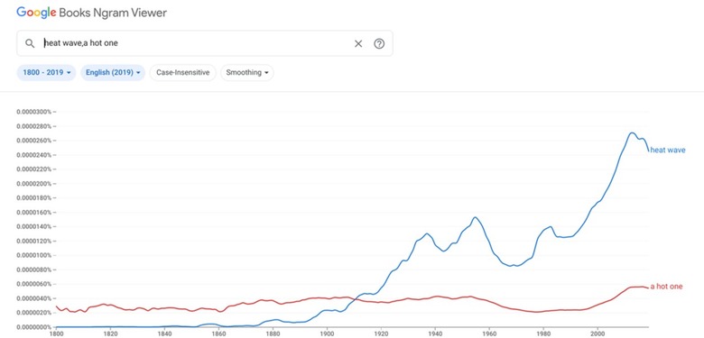 As well, searches for the term "heat wave" have steadily increased; using historical data going back decades (including content from books and other print media via Google Books), the term has been used since at least the year 1800. However, based on Google's data, it has only steadily spiked in usage since around the mid-1980s, underscoring the changes in climate over the past few decades.