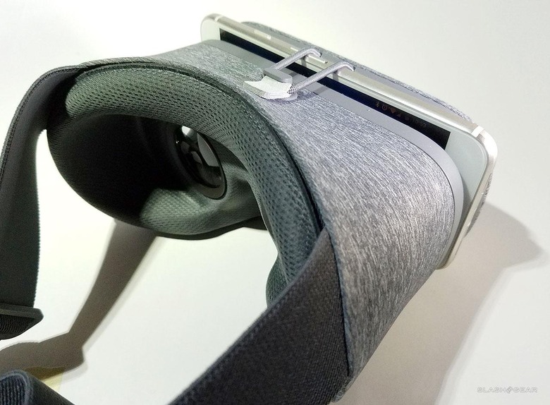 Placing the smartphone in the front of the headset is simple, and making sure it's aligned for both eyepieces is relatively intuitive. There aren't any micro-adjustments to be made like in some alternative headsets. It seems as though Google is resting assured that our IPD (interpupillary distance) is whatever they've measured at the lab. So far so good.