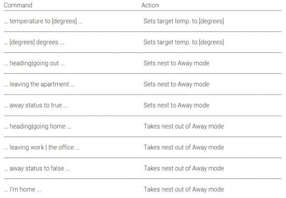 The Nest will be able to hear a number of commands, but it will only provide three main functions, which are setting the device to away mode, returning the device from away mode, and changing the temperature. You can say things like "set temperature to..." or "leaving the office now" to make sure the Nest wakes up from away mode.