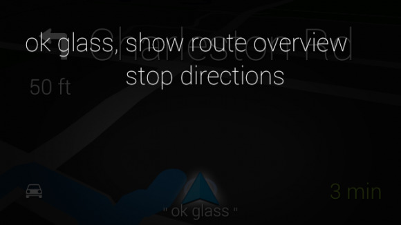 Shifting over to some of the voice commands and we are looking towards Navigation and captioning a picture or video with voice after capture. The new navigation commands include being able to show the route overview, hide the route overview and stop directions. Those looking to caption an image or video will be able to do so by saying "ok glass, add caption."