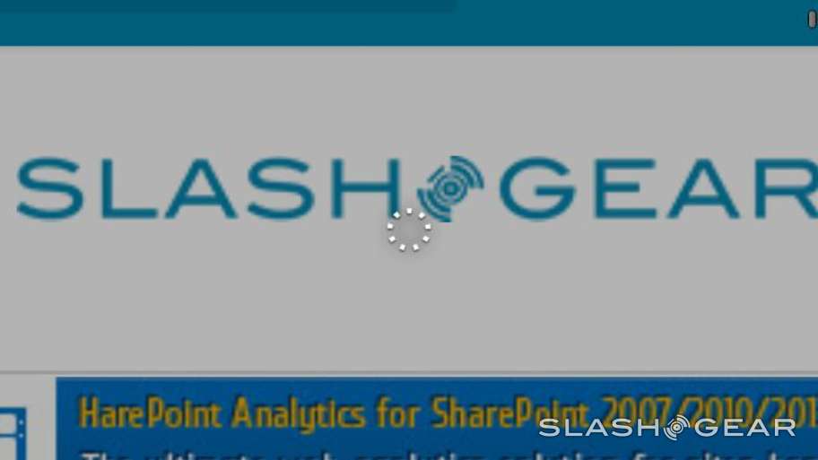 The big difference here is laid bare when you see the loading screen for a webpage – this user interface with big text front and center is, if you've never seen it before, standard fare inside Glass, set up so you can slip through bits and pieces of information from the temple-based image brought to you by Glass.