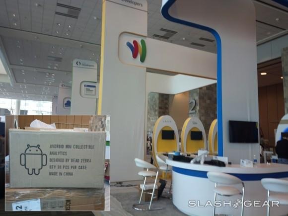 BONUS FIND: here you'll see an unopened box of special-edition Android collectable figures from Dead Zebra. We promise we didn't peek!Google Glass has its own section on level 2, users able to have a peek at the current iteration of the device as well as participate in talks on the future of the device. We're expecting more information on the future of the headset in the main keynote address in the morning as well as in more than one chat later in the week.