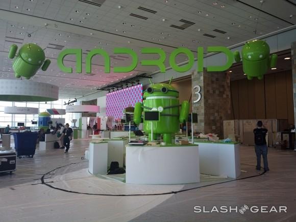 Up on the top level of the center, Google has made a massive show of both Android and Chrome. To one side, attendees are greeted by flying Androids and their floor-bound kin in a display not unlike what we saw at Mobile World Congress 2012 and 2011. It seems that this location has become the heart of the Android press event presentation – and perhaps rightfully so.