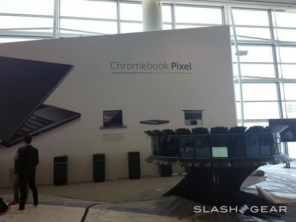 Turn around 360 degrees and you'll find a fabulous display – not yet turned on, as it were – of Chrome. One setup shows the highest-end Chrome OS hardware to date in an array that'll certainly be a sight to behold once it's turned on.