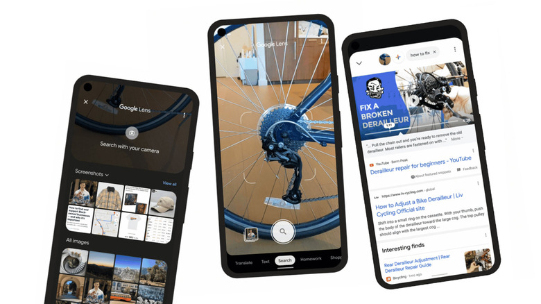 Another example of a more powerful set of search results Google is releasing soon comes with video results. Using Google Lens to photograph a broken bit of your bicycle and typing "how to fix" can now result in not only webpage results with tutorials, but specific moments in video clips.