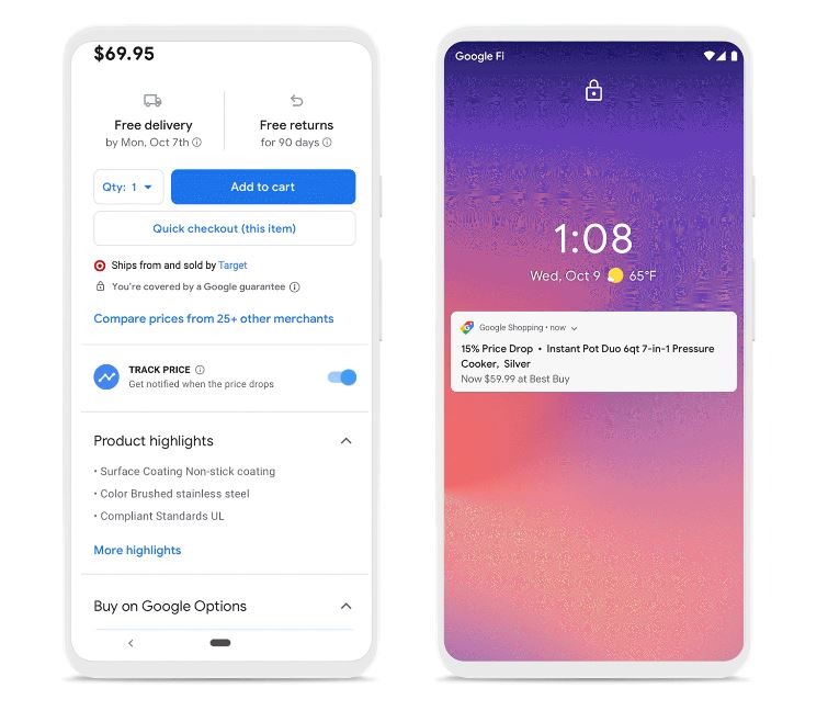 In a couple of weeks, Google will add email functionality to price tracking as well, so you'll be able to elect to be notified by email when the price drops. For holiday sales events like Black Friday, price tracking could be particularly handy, as it's nearly impossible to comprehensively track all of the sales happening across retailers on your own.