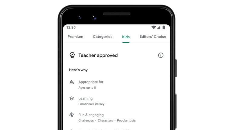 The Teacher Approved designation is bestowed to certain apps in partnership with teachers and other experts, according to Google. The apps must meet a certain quality standard and be highly rated by teachers to earn the new badge; influencing factors include things like the type of experience offered, how appropriate the app is for its target age groups, and how much 'delight' and 'enrichment' it offers.