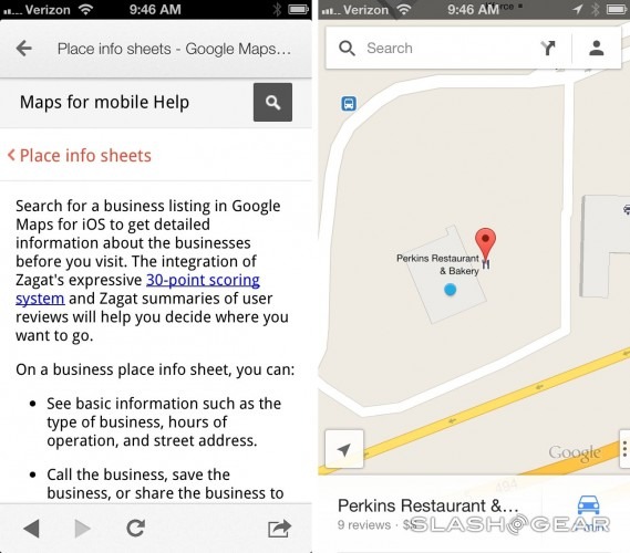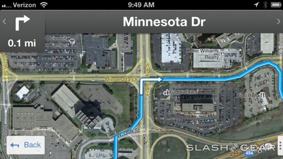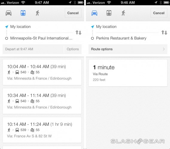 It's finally time to get (back) to business with a Google-run map app for iOS, this time with Google Maps own unique app separate from the main built-in collection of iDevice apps. For those of you that haven't followed along with the iPhone since its birth, you should know that it was only with iOS 6 and the iPhone 5 that Apple cut ties with Google Maps for their Maps app that comes with the iPhone, iPad, and iPod touch right out of the box, replacing it with their own branded Apple Maps. [See our supplemental Google Maps vs Apple Maps hands-on to the airport post for one part of the big battle.] Now with Google Maps, Google has its own unique app that brings not only a new face to the iOS version of their central mapping ecosystem, but a new look for the app for all platforms as well – in iOS 6 this UI is unique!