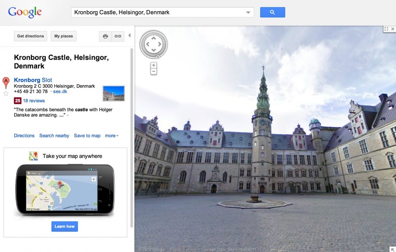 Google has also sent its cameras inside some landmarks, so you can now step into Kronborg castle in Denmark, for instance. The search giant uses a combination of Street View photography cars, bikes, and even individually-work camera backpacks to gather its footage.