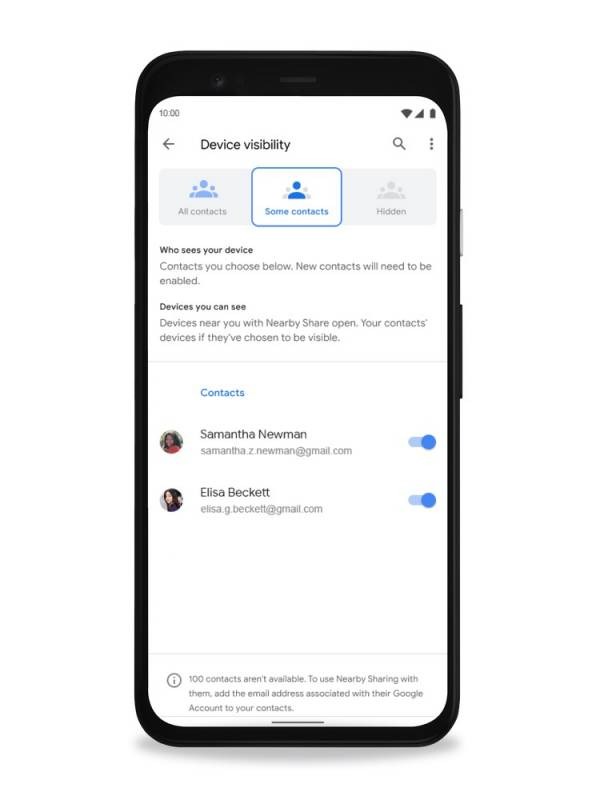 As you'd hope, there are some safeguards so that people can't just drop random files onto your phone without you wanting them to. Nearby Share supports different visibility settings, for example, so that you can choose to be visible to all contacts, some contacts, or hidden if you prefer. Files sent and received can be transmitted anonymously.